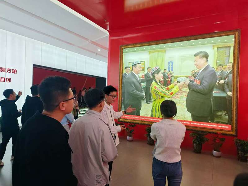 入党积极分子陈俊杰说到:这些影像让我真切体会到,今天的新疆是几代人手挽手、肩并肩奋斗出来的。党员吴彦娇说到:听着讲解,看着这些实实在在的发展数据,我对课堂上学习的“中国特色解决民族问题的正确道路”有了更具体的理解。新疆的生动实践证明,在中国共产党的领导下,各族人民完全有能力创造令人瞩目的发展成就。