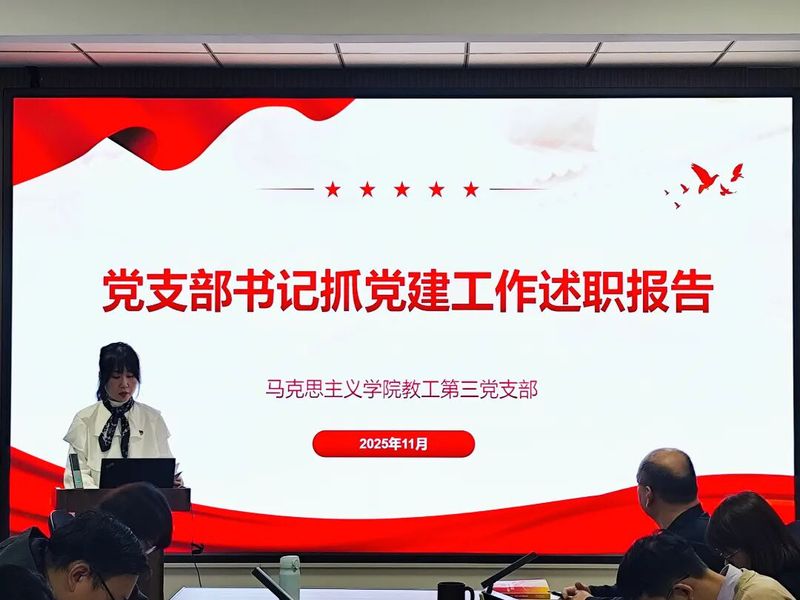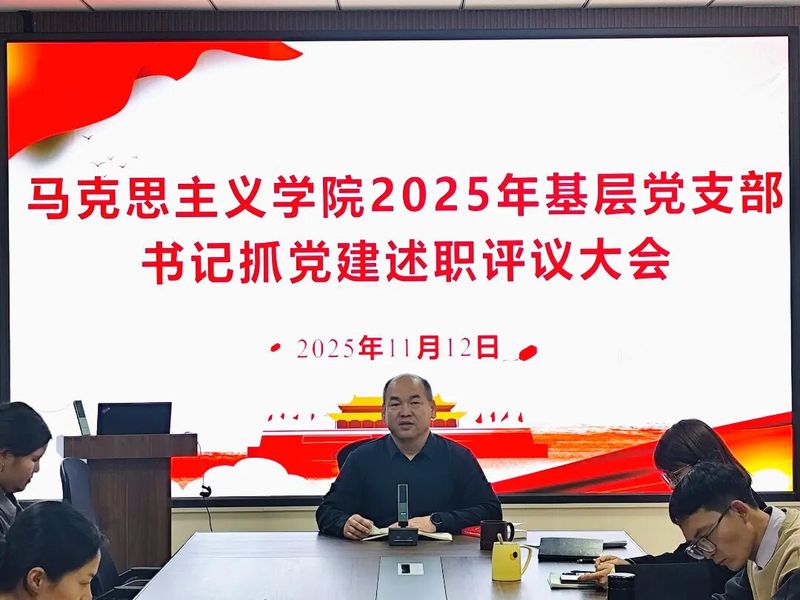 为深入学习贯彻习近平新时代中国特色社会主义思想和党的二十届四中全会精神,全面落实习近平总书记关于党的建设重要思想,切实增强基层党支部书记政治素养、提升履职能力,11月12日下午,马克思主义学院举行2025年基层党支部书记抓党建述职评议大会。学院班子成员及全体教职工参会,学院党委书记马志强主持会议。