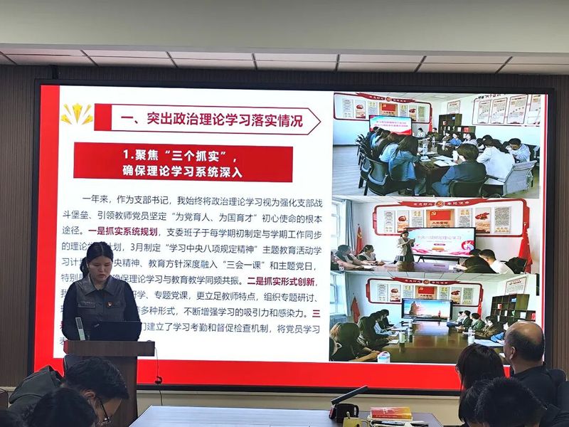 述职评议环节,教职工第一党支部书记丁露露、第二党支部副书记夏鸿章、第三党支部书记郭颖、研究生党支部书记毋立根紧扣2025年度党建工作重点,围绕政治建设、组织设置、组织生活、班子建设、教育管理等多方面系统汇报了支部年度建设成果与工作推进情况,既分享了支部工作的具体经验与务实举措,也深刻剖析了现存问题与短板不足,并明确提出了未来改进思路与目标任务。针对各支部述职情况,马志强、蒲丽霞、苗志娟分别进行了精准点评,既肯定亮点成效,也直指问题关键,为各支部后续工作提供了具体指导。