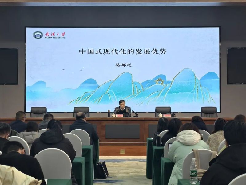 11月26日下午,马克思主义学院举办学习贯彻党的二十届四中全会精神专题报告会。会议邀请新疆大学博峰战略人才、马克思主义学院名誉院长骆郁廷教授以“中国式现代化的发展优势”为题作专题辅导。学院领导班子成员、全体思想政治理论课教师、专兼职辅导员及马克思主义理论专业硕士研究生参会。校党委副书记张小楠教授主持会议。