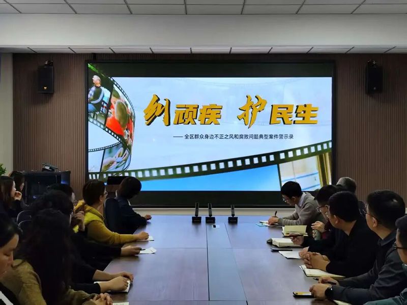与会人员观看了警示教育片《纠顽疾护民生——全区群众身边不正之风和腐败问题典型案例警示录》。该片聚焦发生在群众身边的作风与腐败问题,通过深入剖析一批具有代表性的反面典型案例,深刻揭示了“微腐败”的危害性、顽固性,生动展现了全面从严治党向基层延伸、坚决惩治侵害群众利益不正之风的坚定决心与显著成效。片中违纪违法人员的深刻忏悔与教训,为在场教师敲响了警钟,具有强烈的警示教育意义。