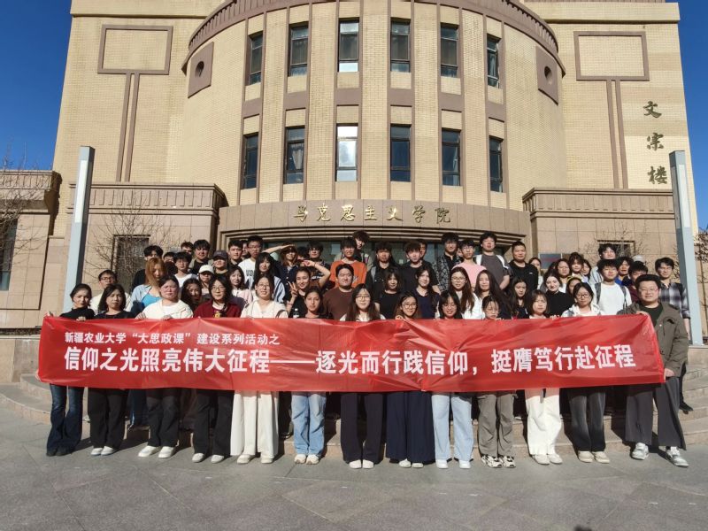为深入学习贯彻习近平总书记关于学校思政课建设的重要指示精神,全面推进“大思政课”建设,将思政小课堂与社会大课堂有机结合起来,4月8日,马克思主义学院马克思主义基本原理教研室组织植保2401班、2402班,种科2401班、2402班200余名学生赴新疆师范大学新时代文明实践党史学习教育基地暨马克思主义理论教育基地,开展以“信仰之光照亮伟大征程——逐光而行践信仰,挺膺笃行赴征程”为主题的“行走的思政课”实践教学活动。