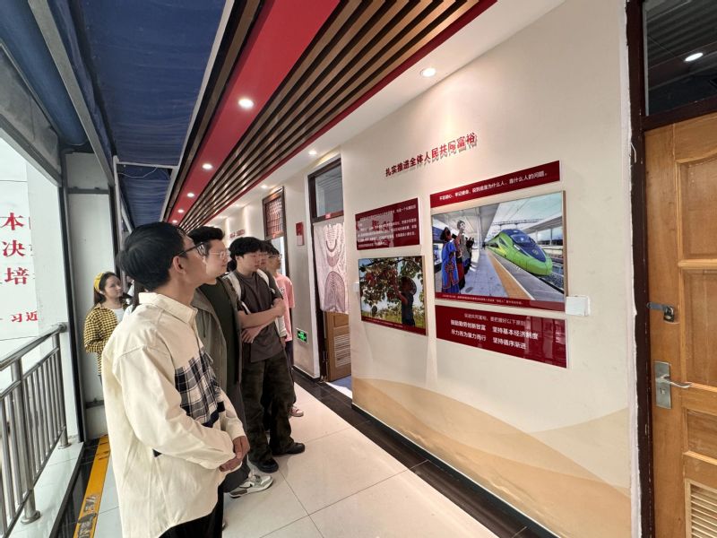 在讲解员的引导下,同学们依次参观学习了思想之旗领航向、人间正道开新篇、初心砥柱天地间、宏阔格局向复兴、治疆方略谱新篇五个部分。
