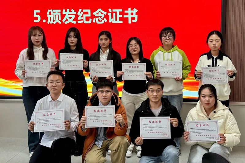 活动中,与会老师为宣讲场次多、效果突出的成员颁发“优秀宣讲员”荣誉证书,为全体宣讲团成员颁发纪念证书。每一份证书,都是“星火”人责任与担当的生动见证。